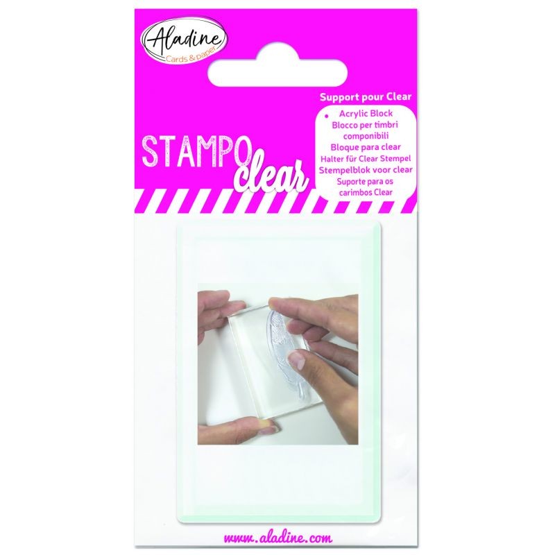Bloc acrylique mesurant 10.5 cm x 7 cm environ et 1 cm d'épaisseur, indispensable pour utiliser les tampons transparents ou tampons montés sur mousse électrostatique.