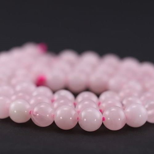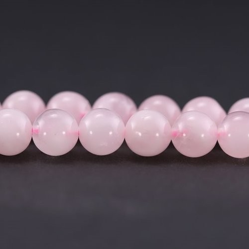Perles rondes et lisses en quartz rose naturel de Madagascar.