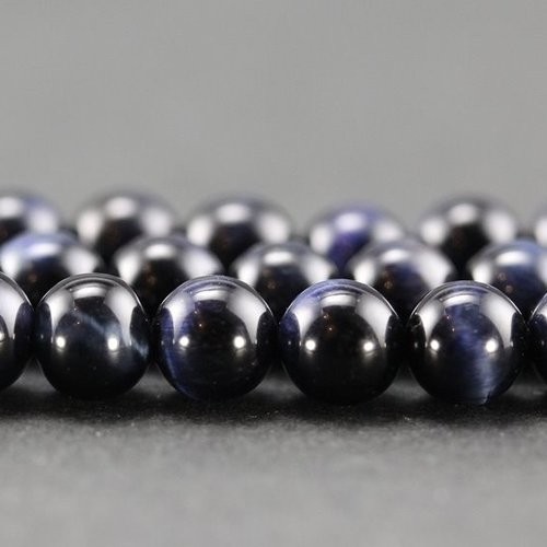 Perles rondes et lisses en œil de tigre teinté bleu métal foncé