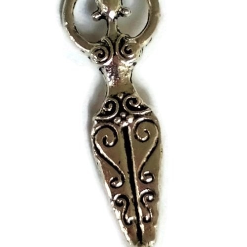 Connecteur grande déesse mère motif spirale de Vie, Pendentif déesse argenté.
