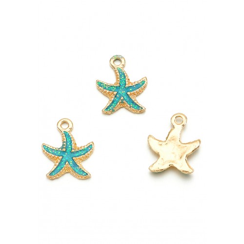 Breloque etoile de mer bleu-métal doré-email