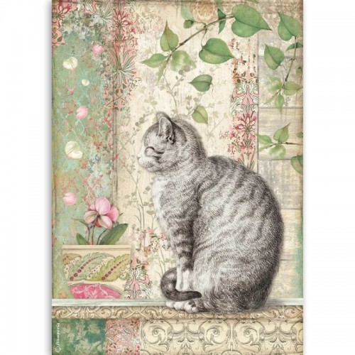 Papier de riz pour découpage chat et fleurs-stamperia