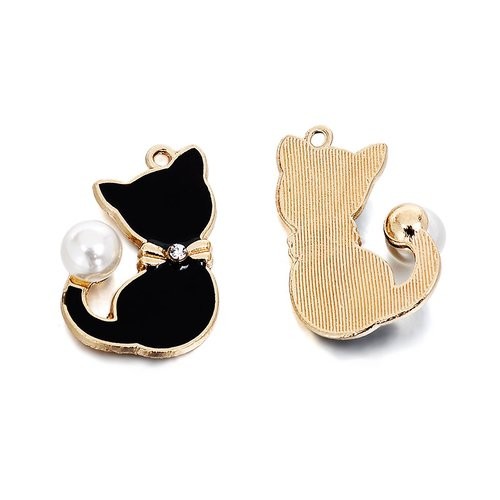 Pendentif-breloque chat-email noir-métal doré