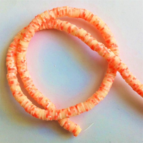 Perles heishi en pâte polymère 6 mm (environ 385 perles) couleur orange saumon