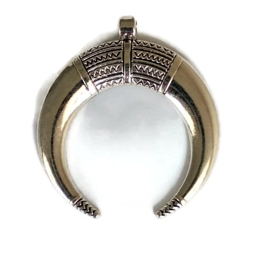 Pendentif demi lune corne ronde ethnique boho en laiton argenté, 50*46 mm